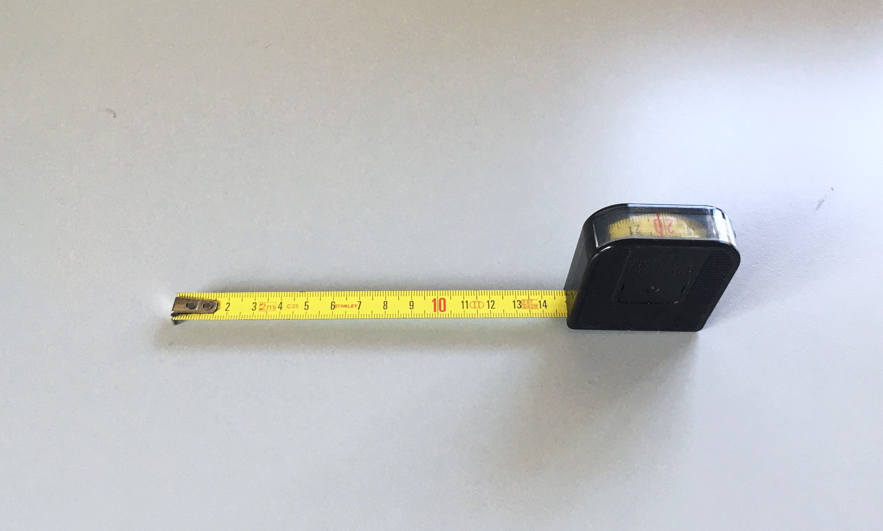 Abbildung 2: Messung der Pendellänge L vom Mittelpunkt der Aufhängung bis zum tiefsten Punkt des Gewichts mit einem Maßband. markdown