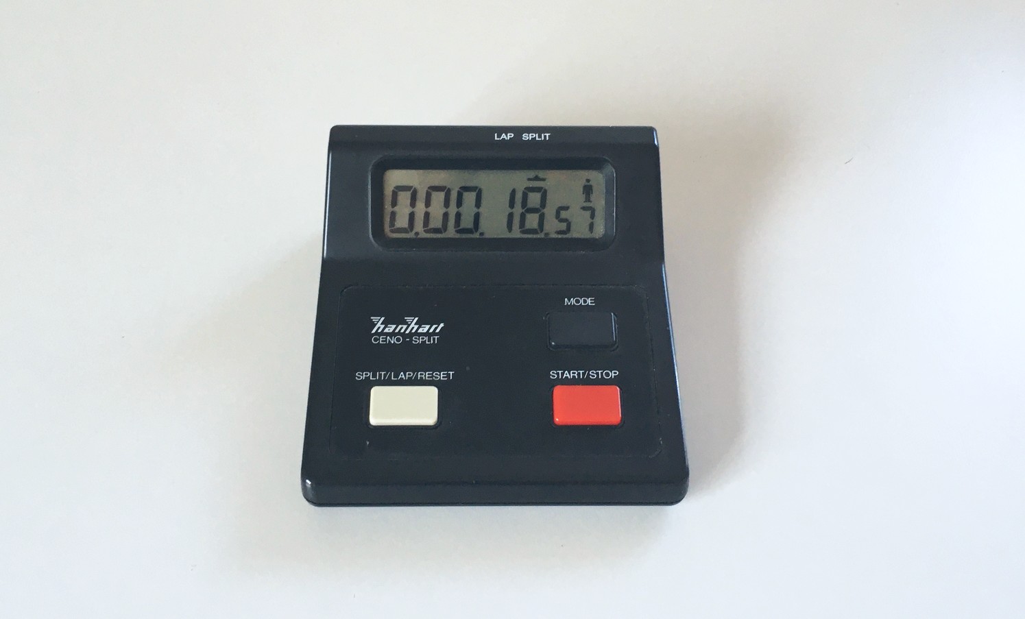 Abbildung 3: Digitale Stoppuhr zur Bestimmung der Schwingungsdauer T durch Mittelung mehrerer Perioden.